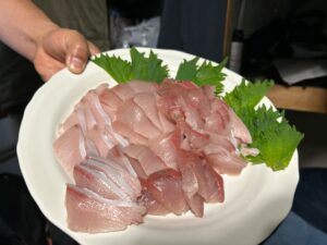 2次会は事務所でスタミナ焼きとお刺身!🐷🐟